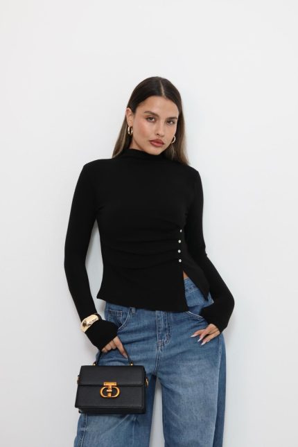 חולצת בטן כפפה – שחור, one-size