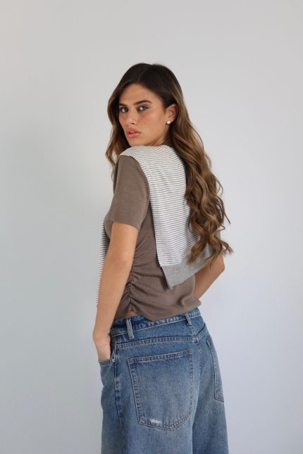 חולצת כיווצים + שאל – חום, one-size
