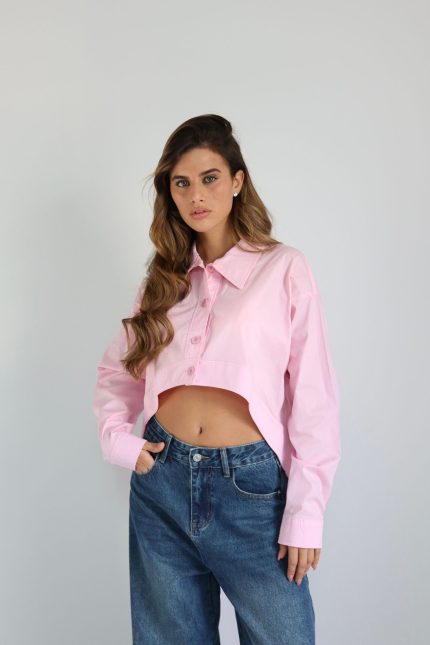 חולצה מכופתרת מעוגלת – ורוד, one-size