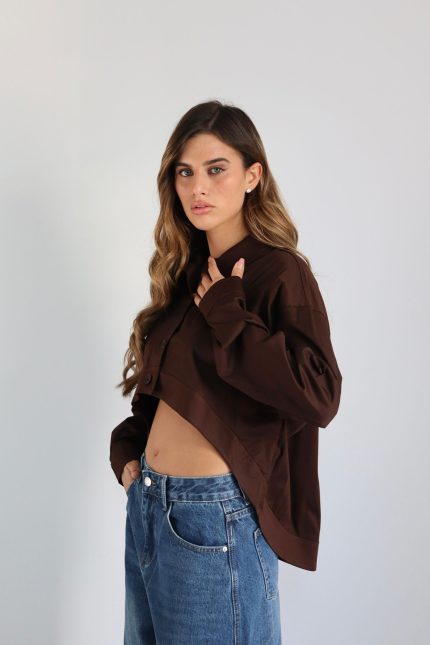 חולצה מכופתרת מעוגלת – חום, one-size