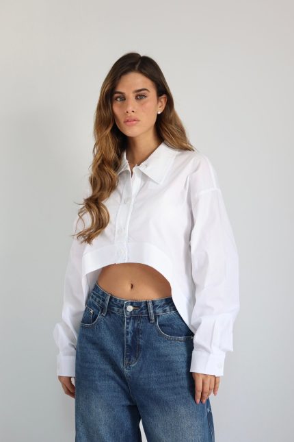 חולצה מכופתרת מעוגלת – לבן, one-size
