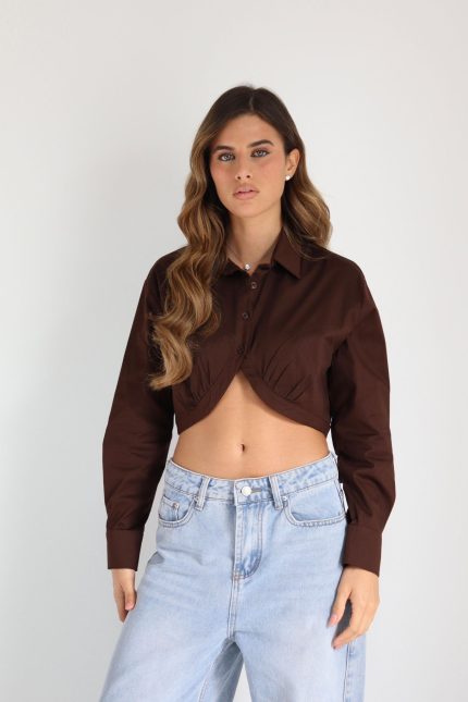 חולצה מכופתרת גל – חום, 2