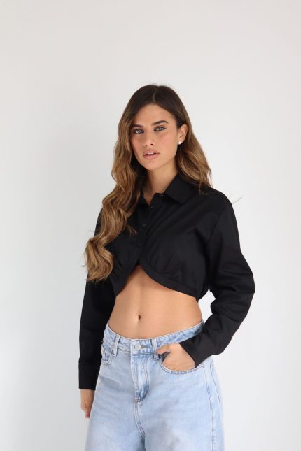חולצה מכופתרת גל – שחור, 1