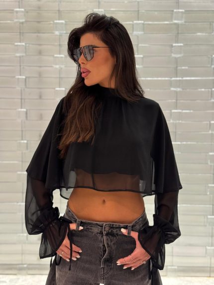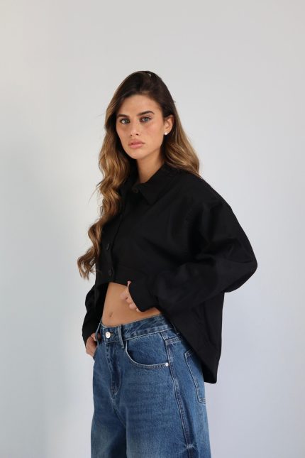 חולצה מכופתרת מעוגלת – שחור, one-size
