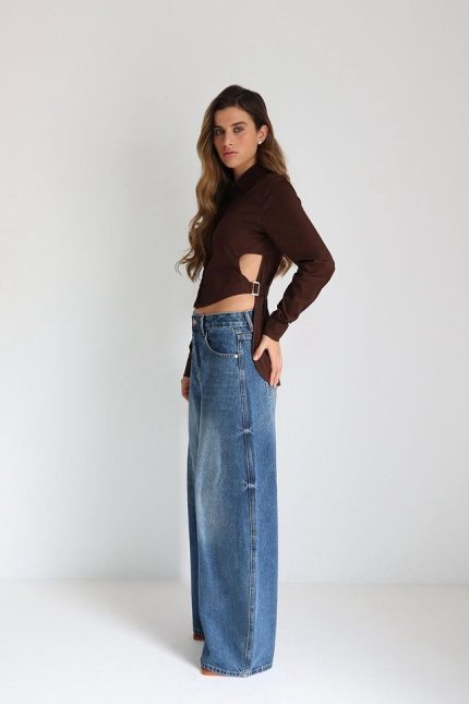 חולצת אבזם פתחים – חום, one-size