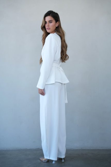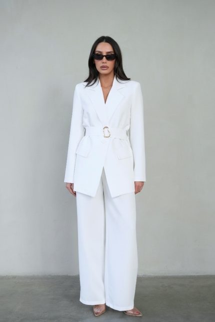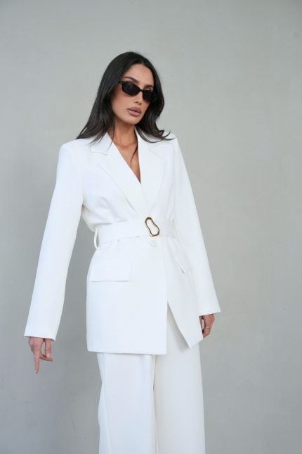 חליפת בלייזר שילוב חגורת אבזם – לבן, s
