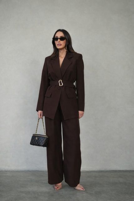 חליפת בלייזר שילוב חגורת אבזם – חום, m