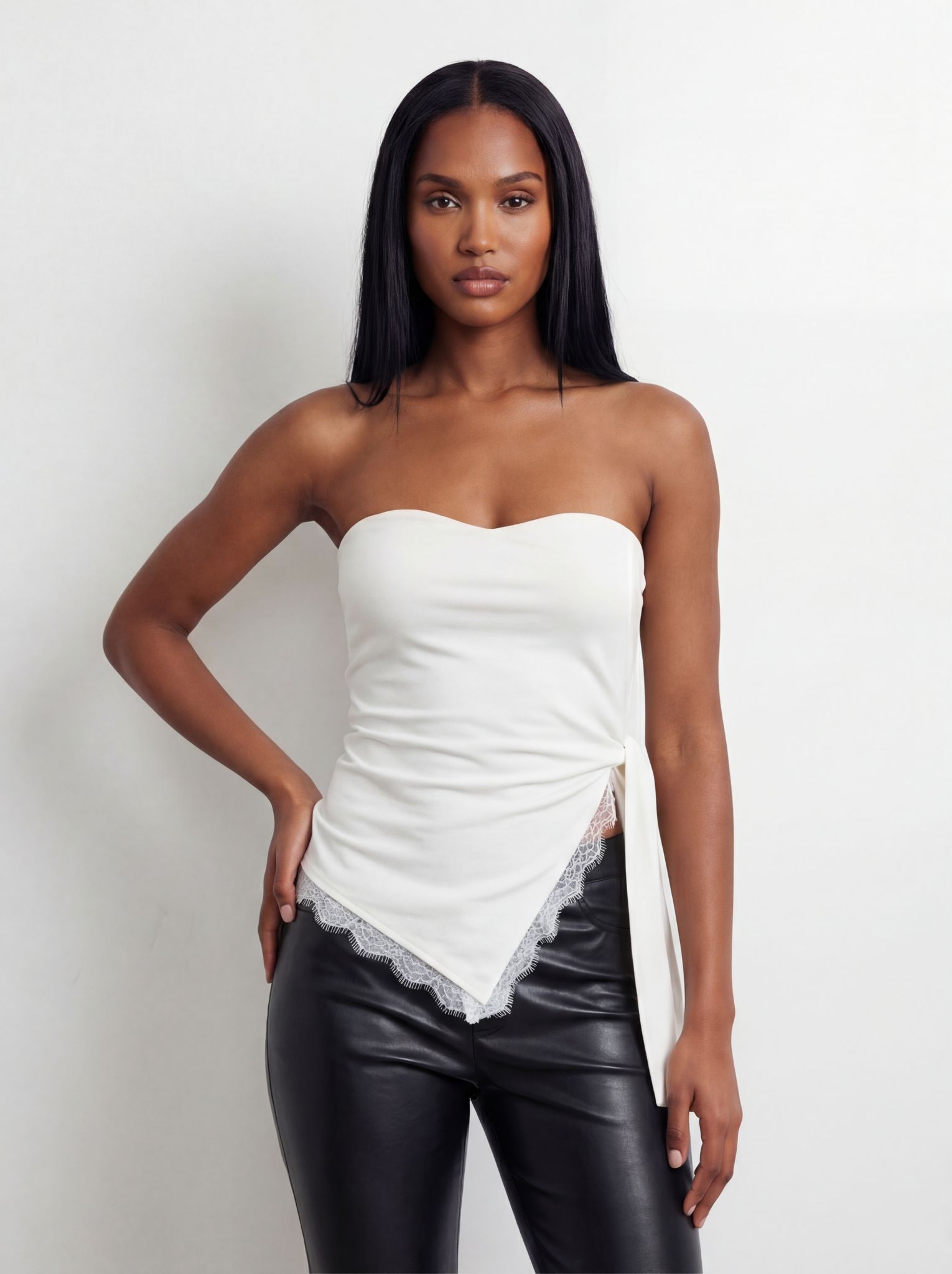 חולצת סטרפלס שילוב תחרה קשירה
