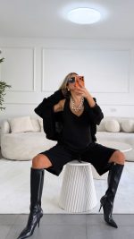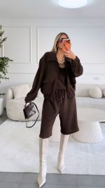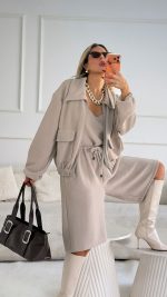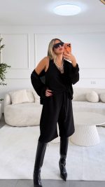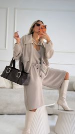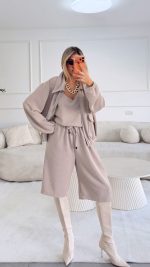 חליפת חצאית צמר שילוב תחרה