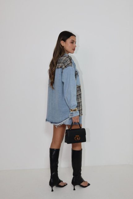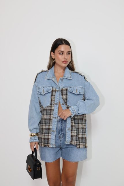 כמות של מכופתרת ג'ינס שילוב משבצות