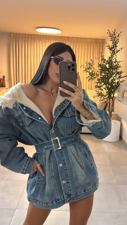 כמות של ג'קט ג'ינס פרווה כפתורים