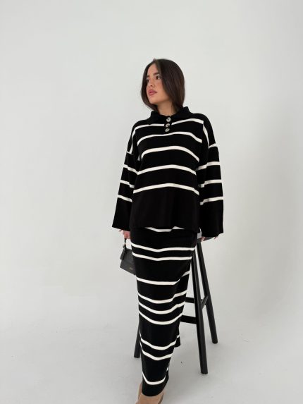 חליפת סריג פסים כפתור – שחור, one-size