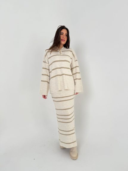 חליפת סריג פסים כפתור – שמנת, one-size