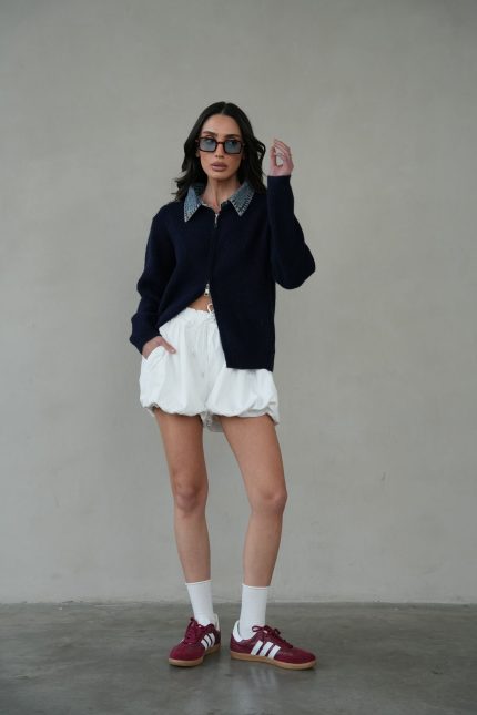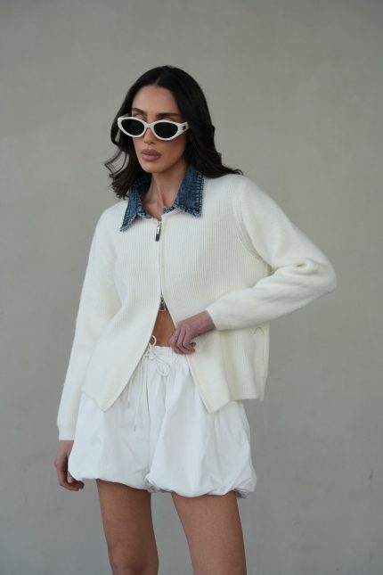 סריג שילוב ג’ינס רוכסן – לבן, one-size