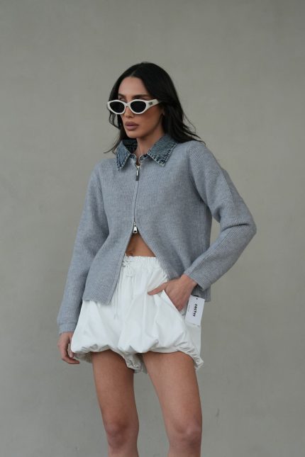 סריג שילוב ג’ינס רוכסן – אפור, one-size