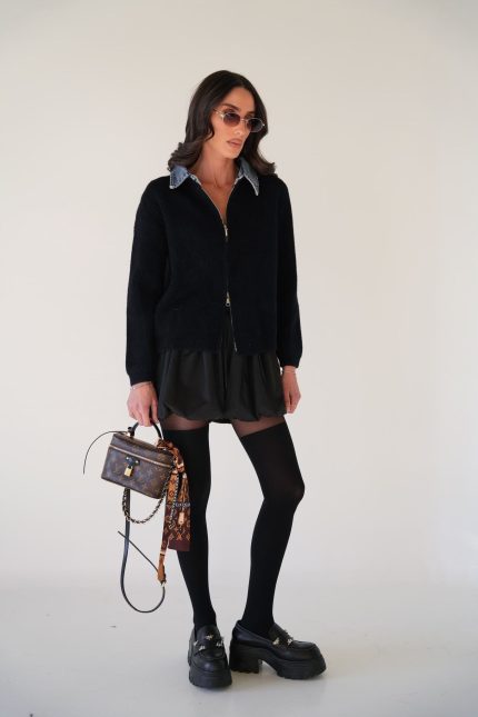 סריג שילוב ג’ינס רוכסן – שחור, one-size