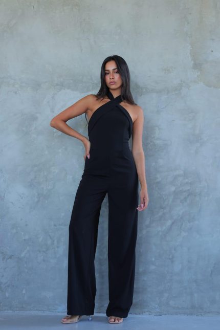 אוברול אבזם וי – שחור, s