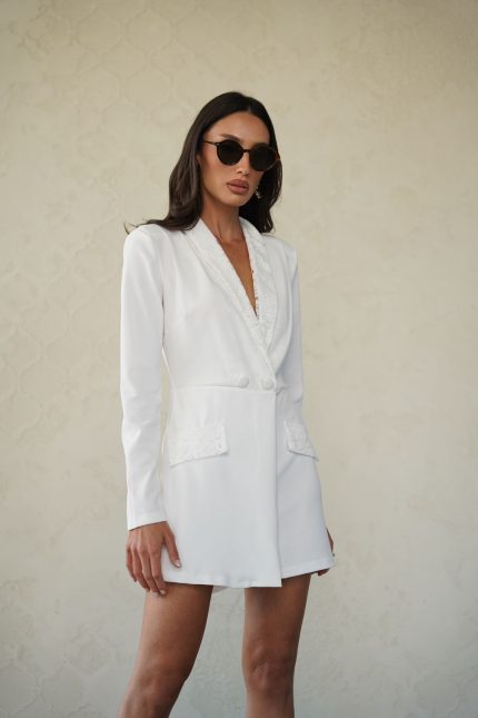 אוברול שורט שילוב תחרה – לבן, m