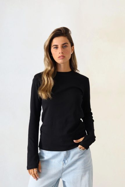 חולצת בייסיק עגול כפפה – שחור, m-l