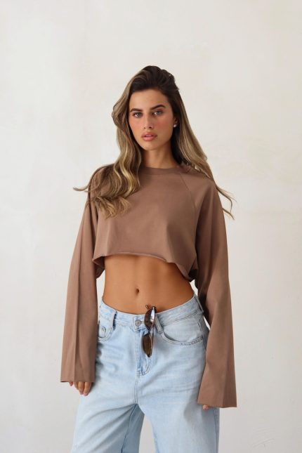 חולצת בייסיק עגול כפפה – מוקה, xs-s