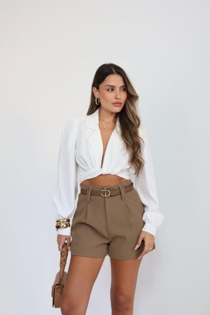 שורט אלגנט שילוב חגורה M – לבן, 1