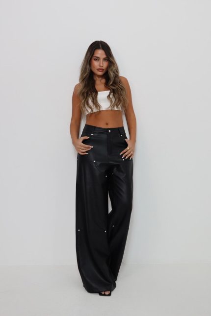 מכנס דמוי עור ניטים – שחור, 1