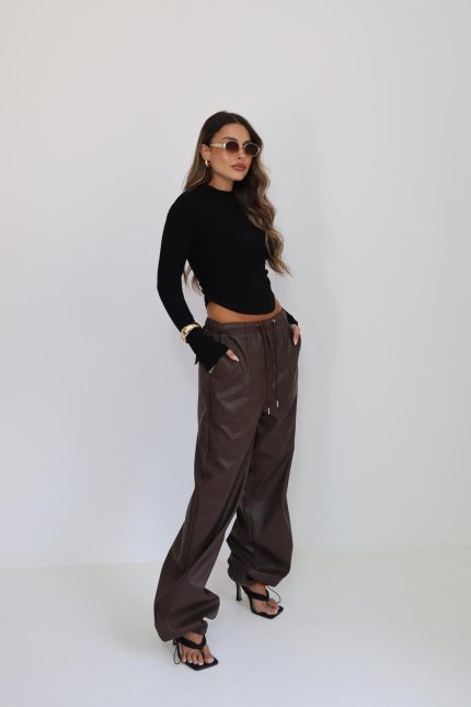 מכנס בלון דמוי עור – חום, m