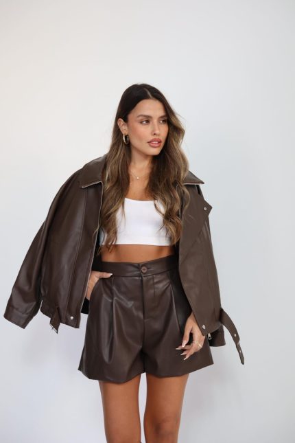 מכנס שורט דמוי עור M – חום, 1