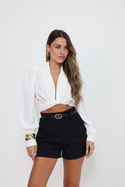 שורט אלגנט שילוב חגורה M – לבן, 2