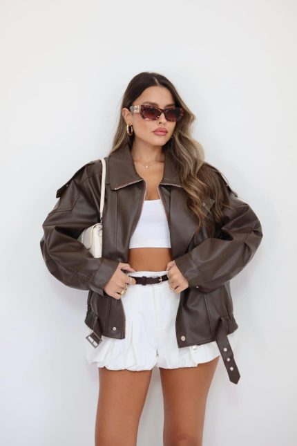 ג’קט טרנץ דמוי עור K – חום, one-size