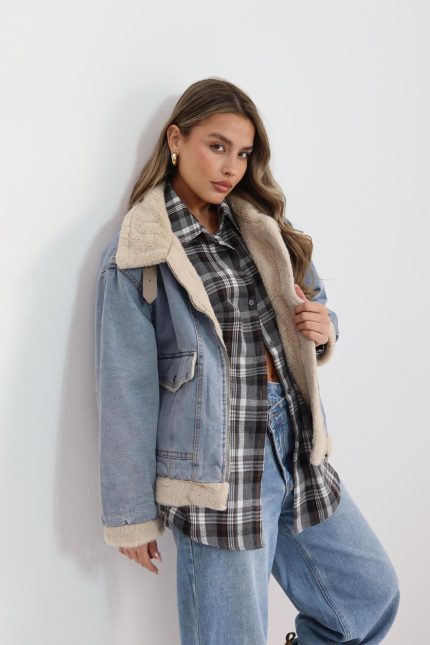 ג’קט ג’ינס צמר כיס