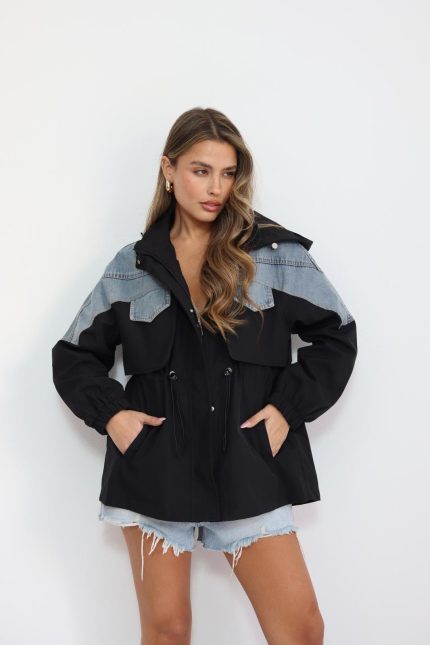 ג’קט קפוצון שילוב ג’ינס – שחור, one-size