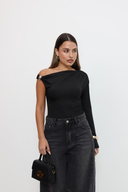 חולצת קרופ צמוד שילוב – שחור, one-size