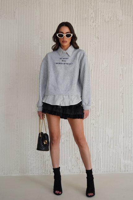חולצת צווארון שילוב משבצות K – אפור, one-size