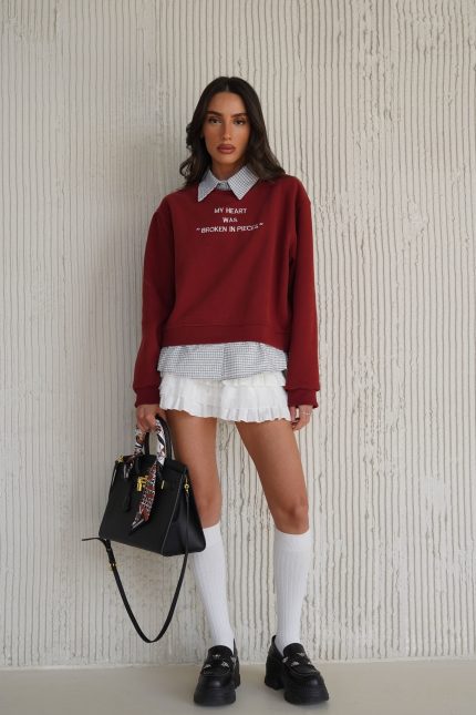 חולצת צווארון שילוב משבצות K – בורדו, one-size
