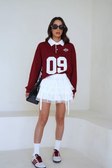 חולצת צווארון מספר – בורדו, one-size