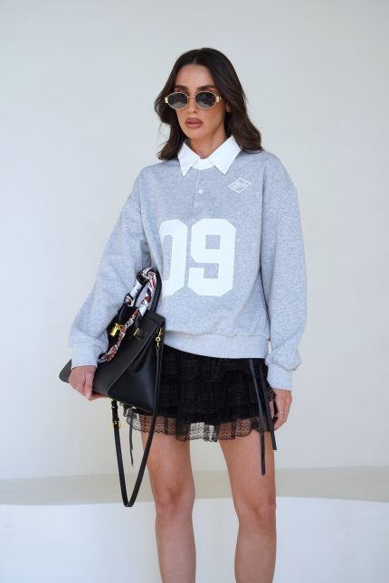חולצת צווארון מספר – אפור, one-size