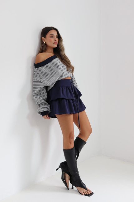 חליפת חצאית צמר שילוב תחרה – אפור, s