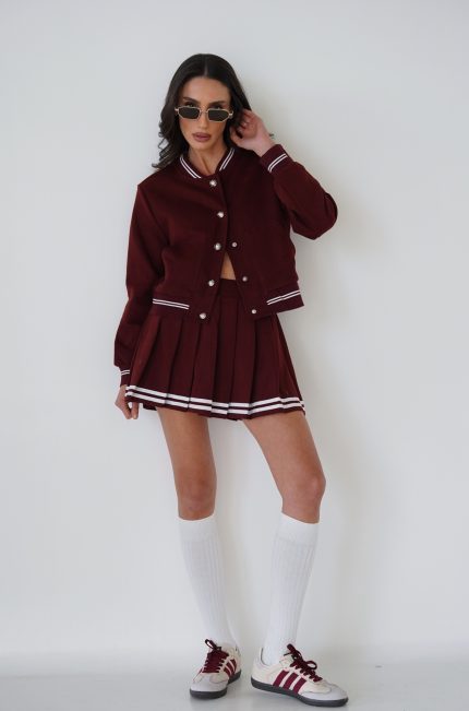 חליפת חצאית צמר שילוב תחרה – בורדו, s