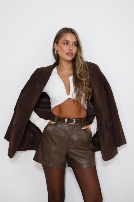 שורט דמוי עור שילוב חגורה – שחור, 1
