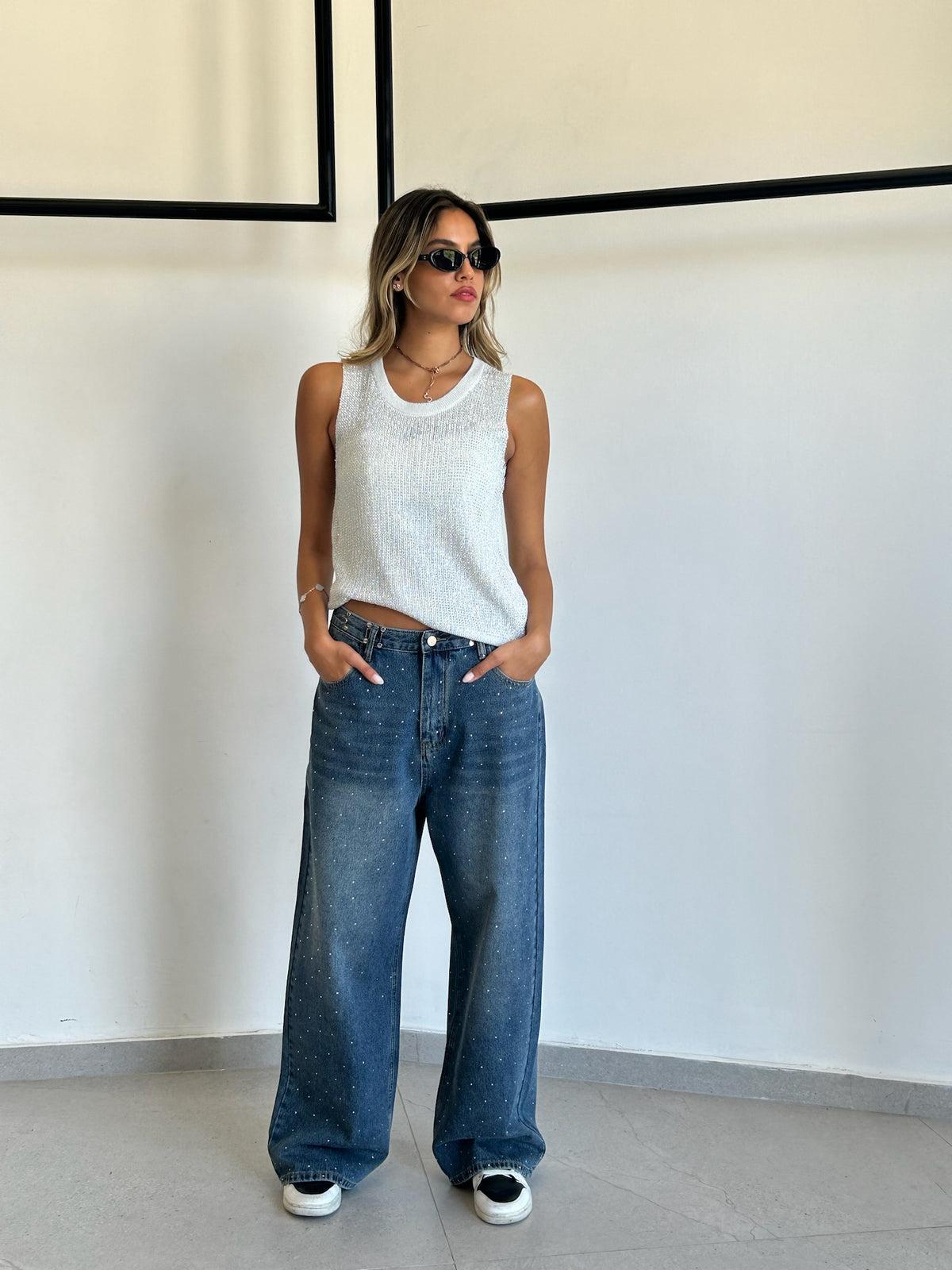 ג’ינס רויאל אבנים כחול TIAGO