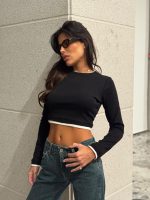 חולצת קרופ צמוד שילוב