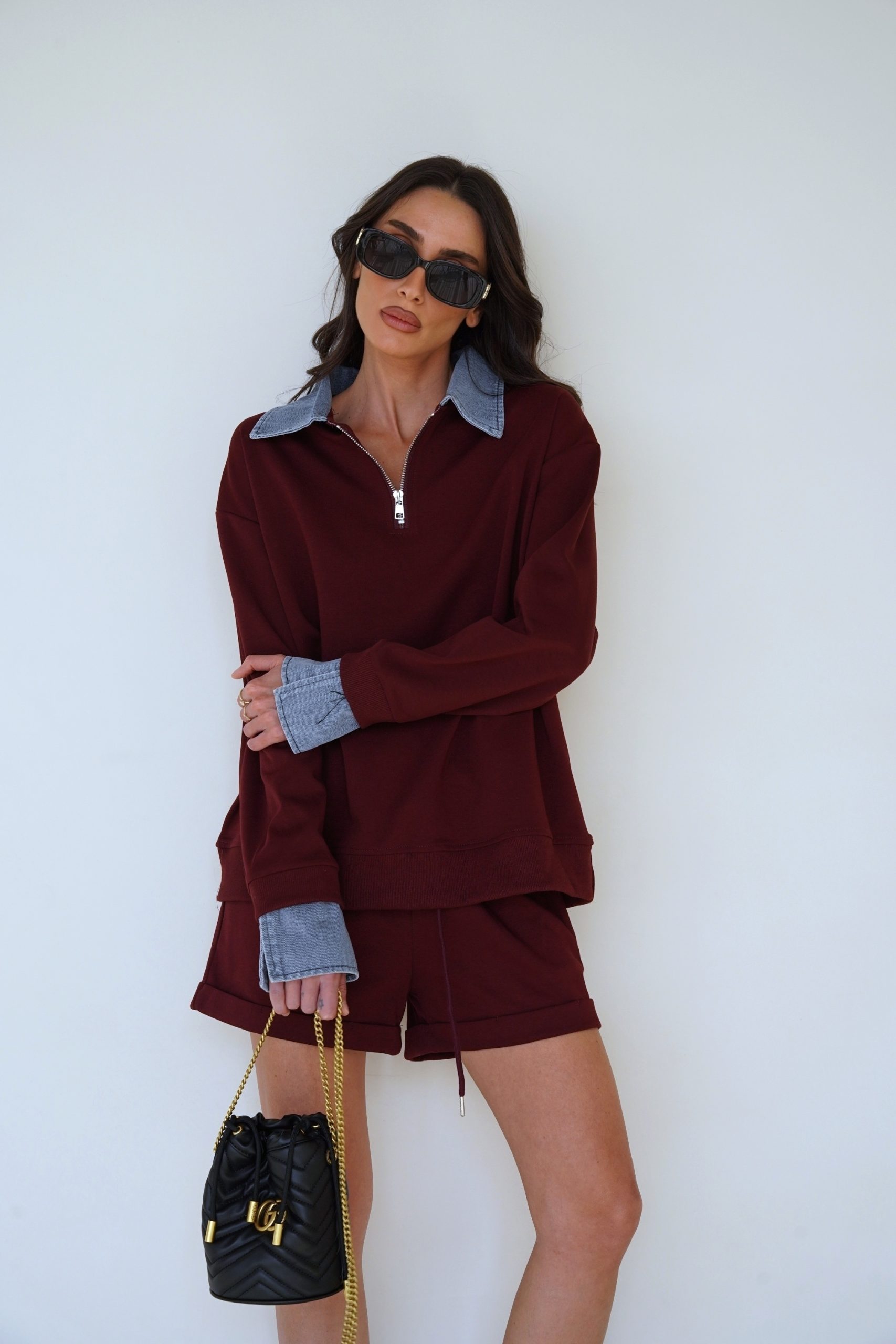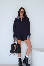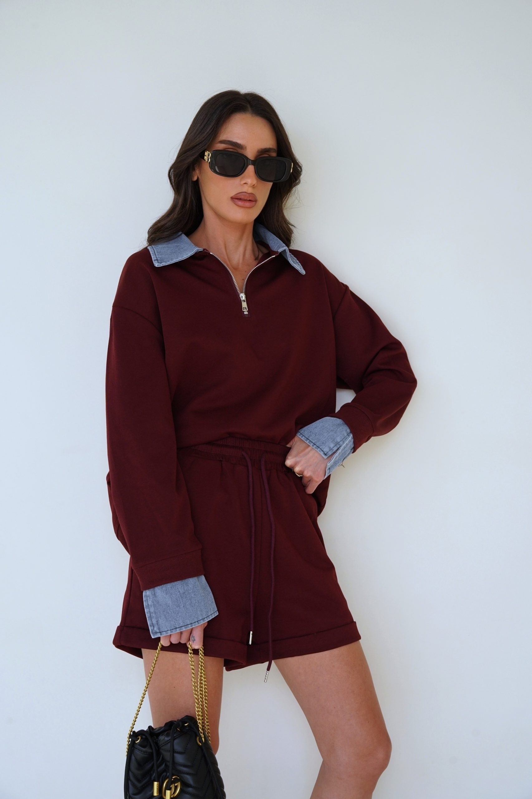 כמות של חליפת שורט שילוב ג'ינס צווארון